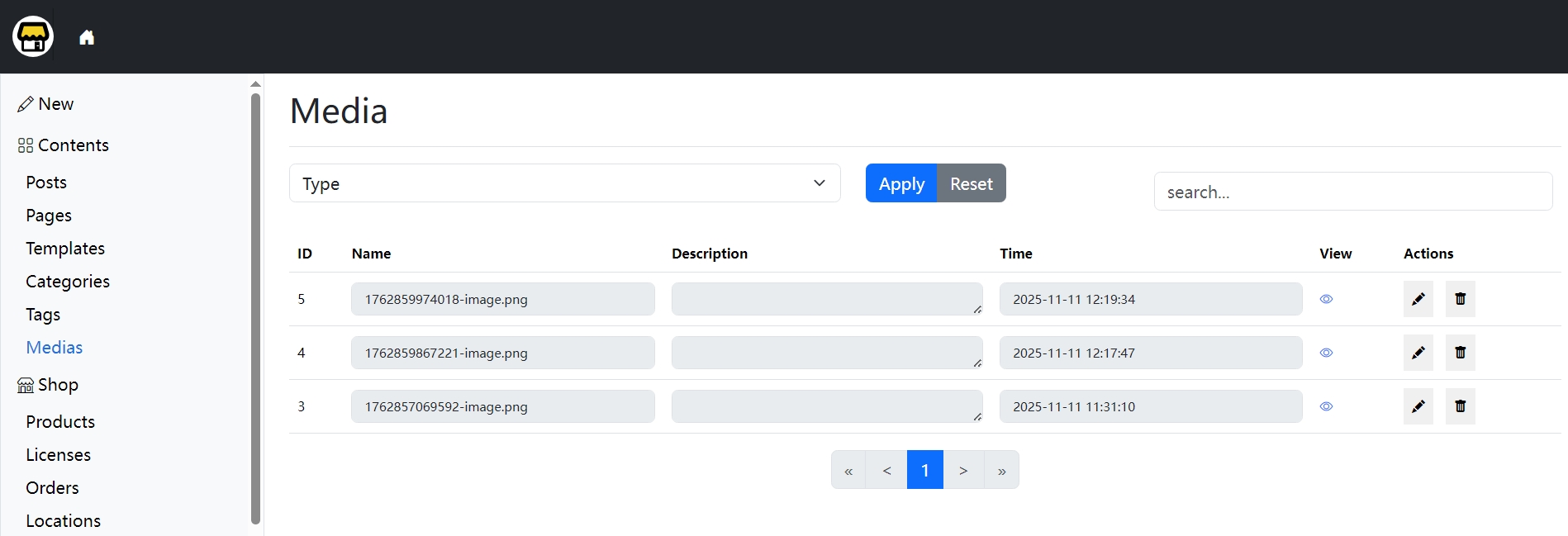 On the editor page, you can drag and drop images or files directly into the editor to upload them. These uploads can also be managed on the Media page.