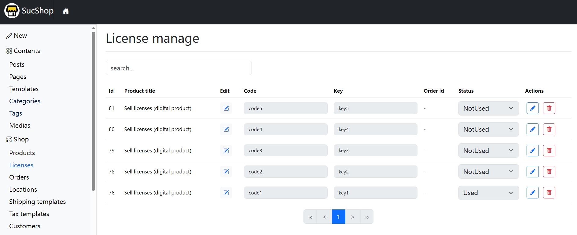 If you sell software license keys or subscription service accounts/passwords, you can manage them in the License Manager page.