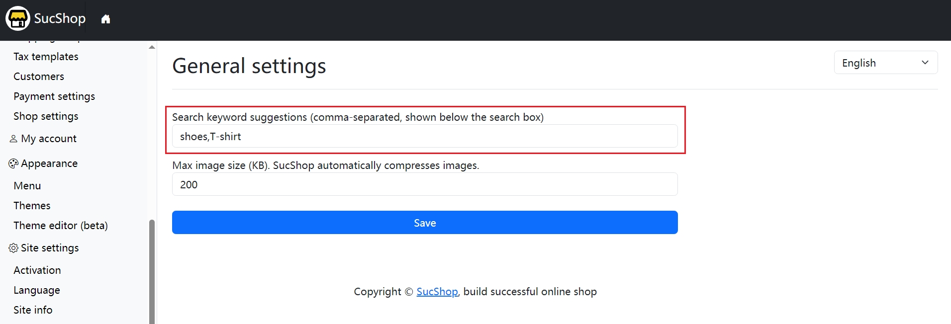 SucShop 1.1.4 Released: Search Keyword Suggestions and Maximum Image Size Settings Added