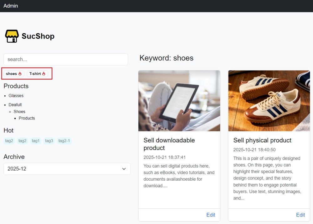 The first new feature is Search Keyword Suggestions. Administrators can now configure recommended search keywords on the Settings → General page in the admin panel. These keywords will be displayed on the front end, allowing users to click and search instantly without having to type their queries manually.