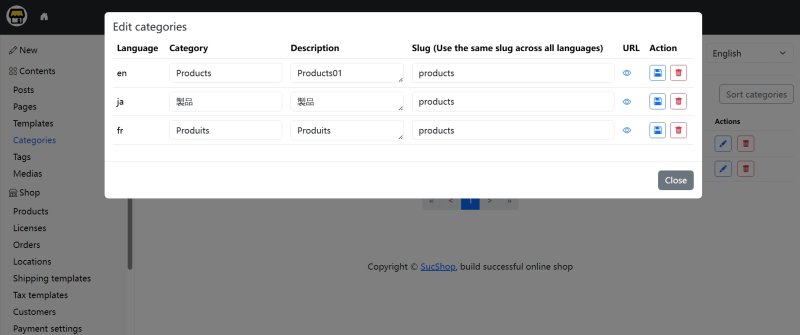 The multilanguage feature in SucShop