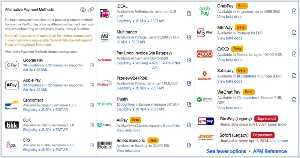 Note: According to PayPal’s official information, these alternative payment methods require an account eligibility review, and the alternative payment methods that users can enable vary by region.